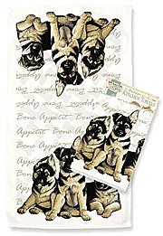 German Shepherd puppies on our 100% cotton towelswill brighten your kitchen chores. On a background reading "Bone Appetit," each towel measures 17" x 31". Makes a great gift that's decorative and useful, too!