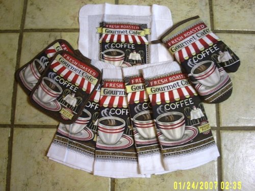8 PIECE COFFEE DESIGN KITCHEN TOWEL SET Review